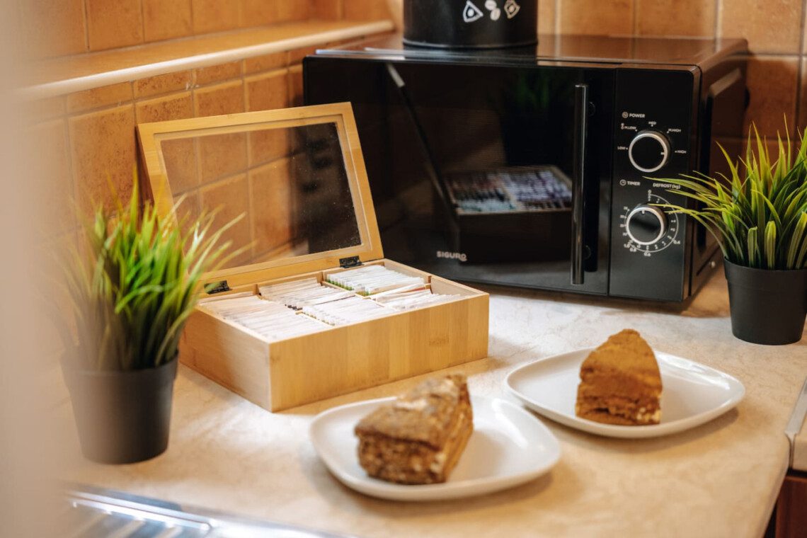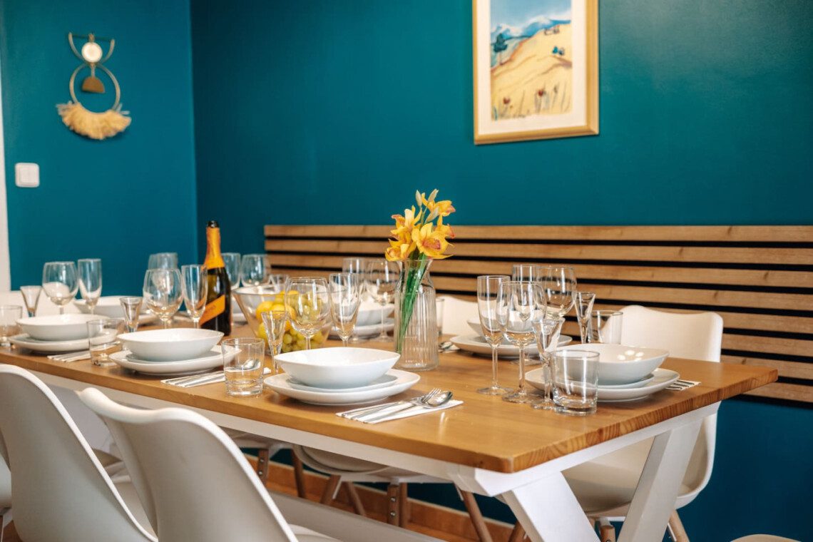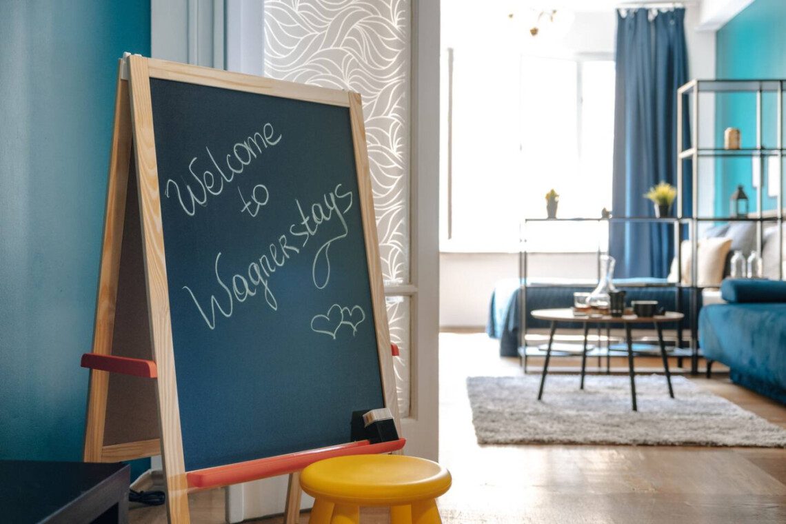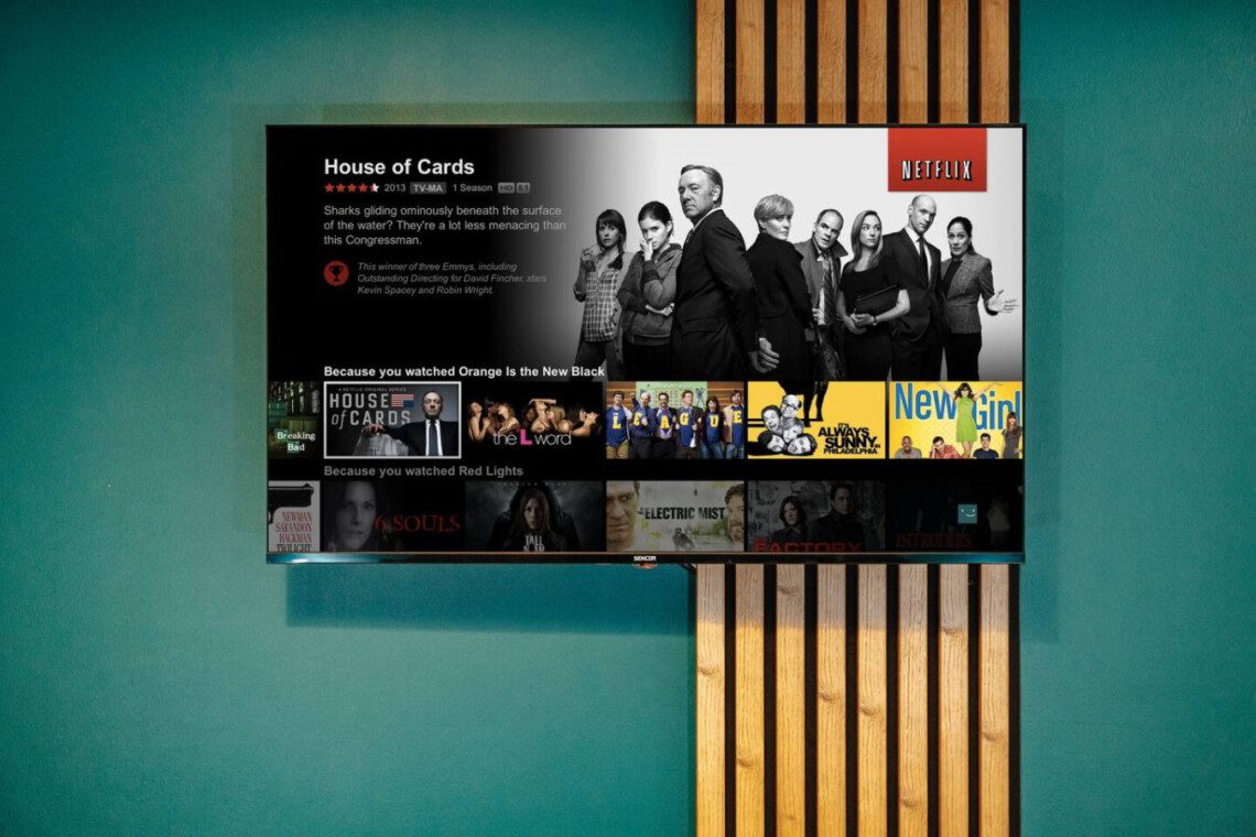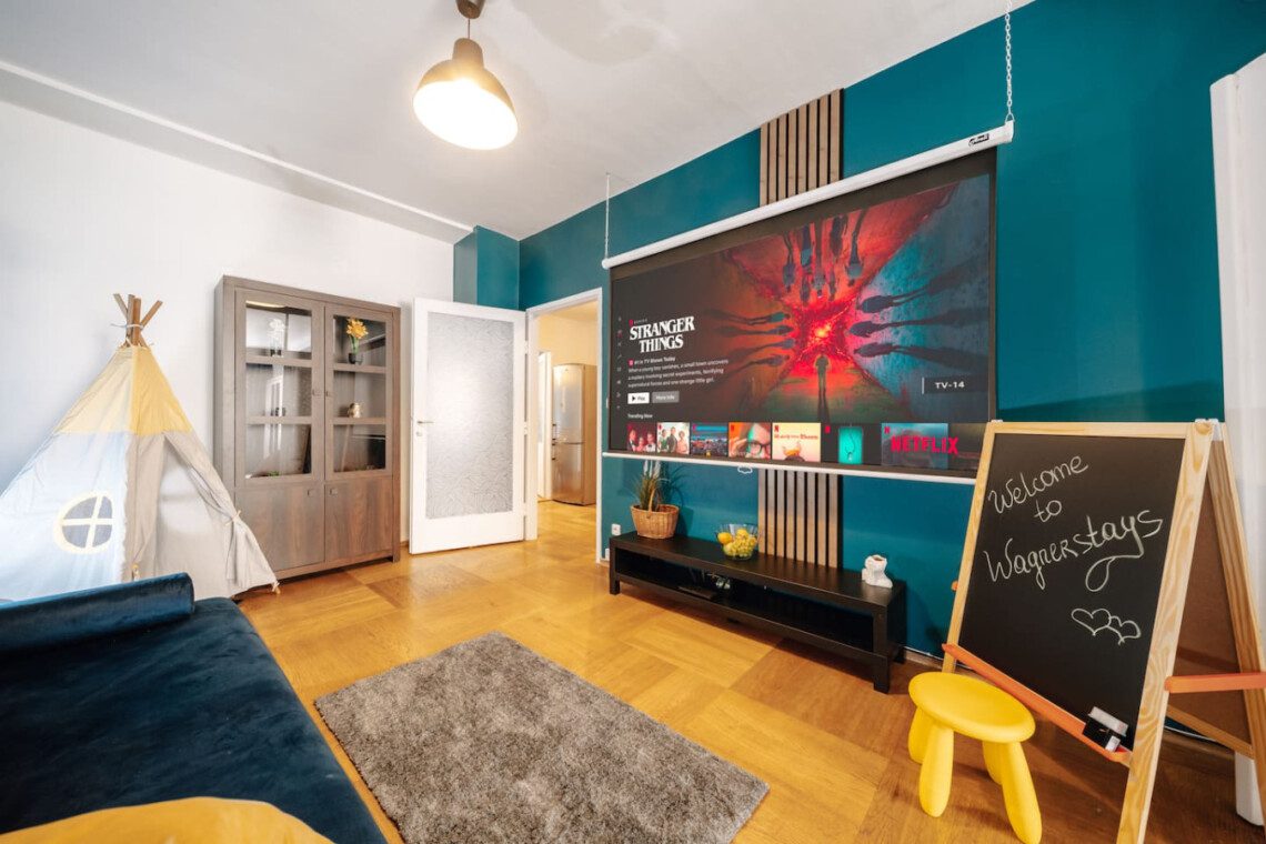 The living room has a comfortable seating area, a kids’ corner, a Smart TV with free Netflix, and a home cinema!